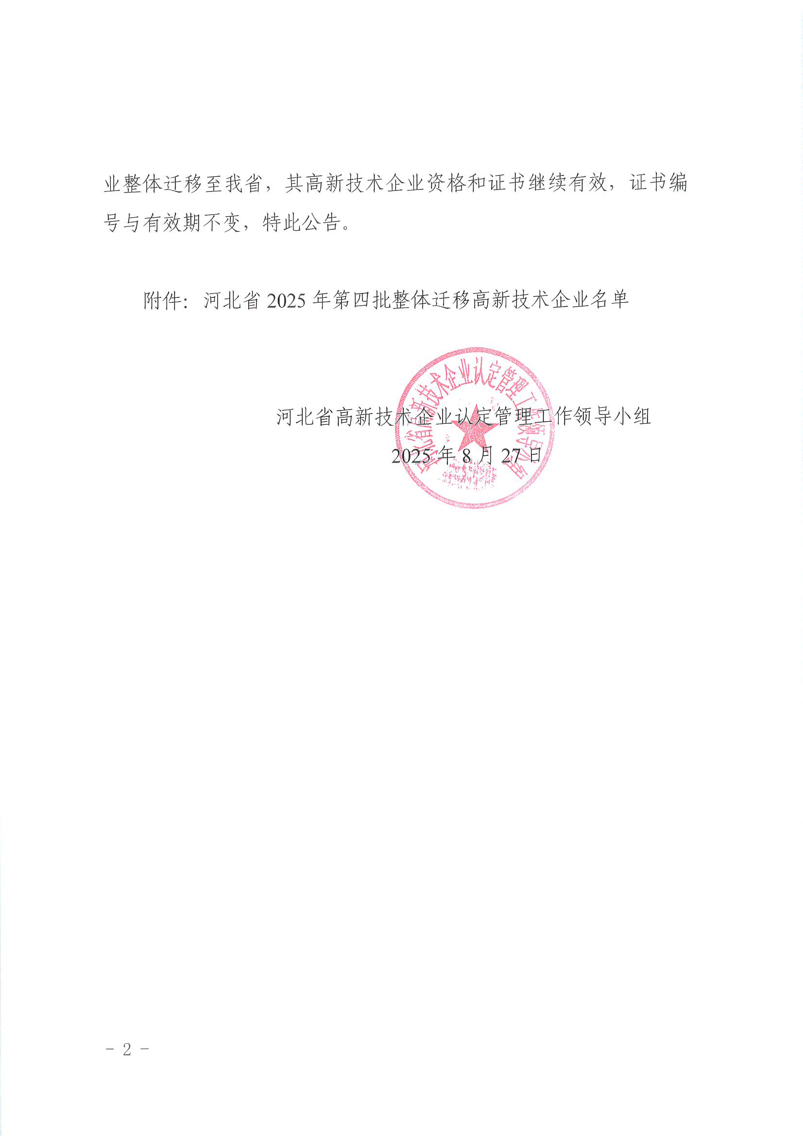 關(guān)于公布河北省2025年第三批更名及重大變化高新技術(shù)企業(yè)的通知
